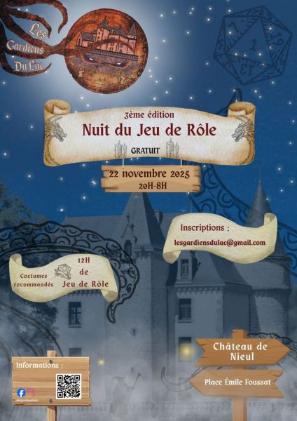 L'Association "les Gardiens du Lac" organise la 3ème édition de La Nuit du Jeu de Role.