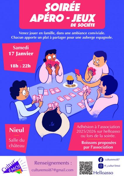 L'association Cultur'Emoi vous propose une soirée apéro - jeux de société.