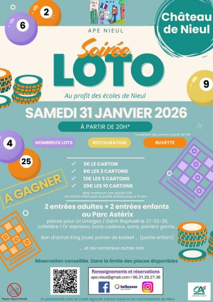 Renseignements et réservations : ape.nieul@gmail.com / 06 31 20 27 36